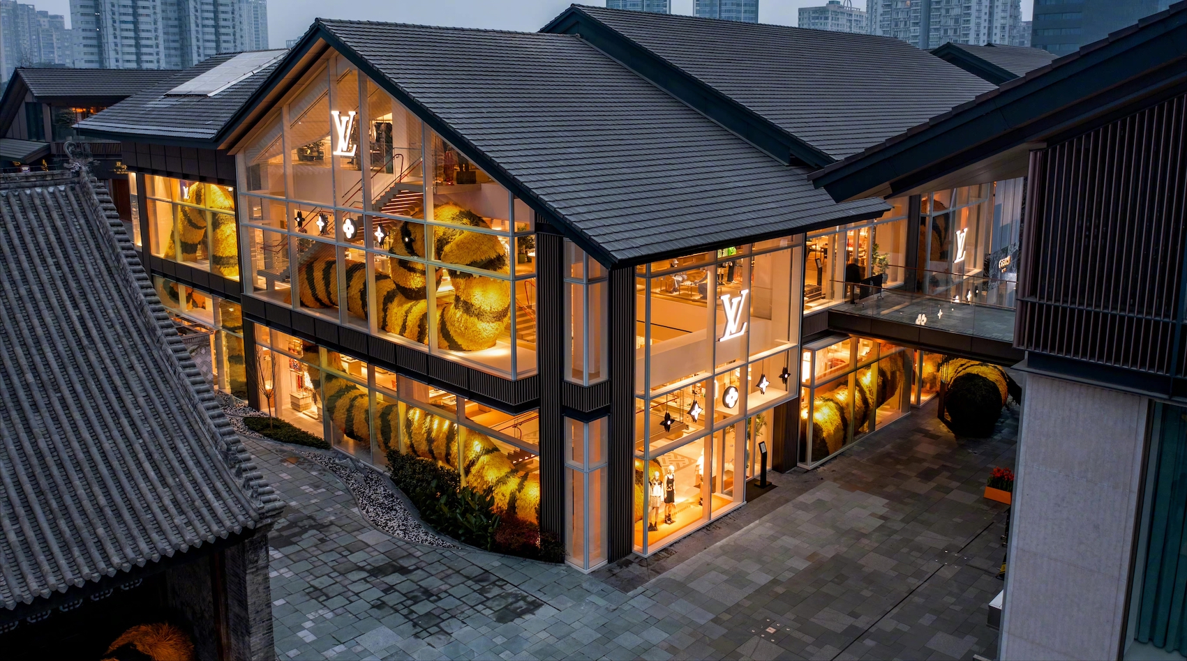 全新的路易威登之家坐落于成都远洋太古里中心地带,比邻独具文化韵味的千年古刹大慈寺,建筑面积逾2000平方米。有别于传统的专卖店设计,该店涵盖两个独栋建筑和开放式庭院,集零售、文化与生活方式空间于一体。广东会馆的川西历史建筑风格与全新打造的摩登空间相互交融,营造出一片既传统又现代的城市新地标。