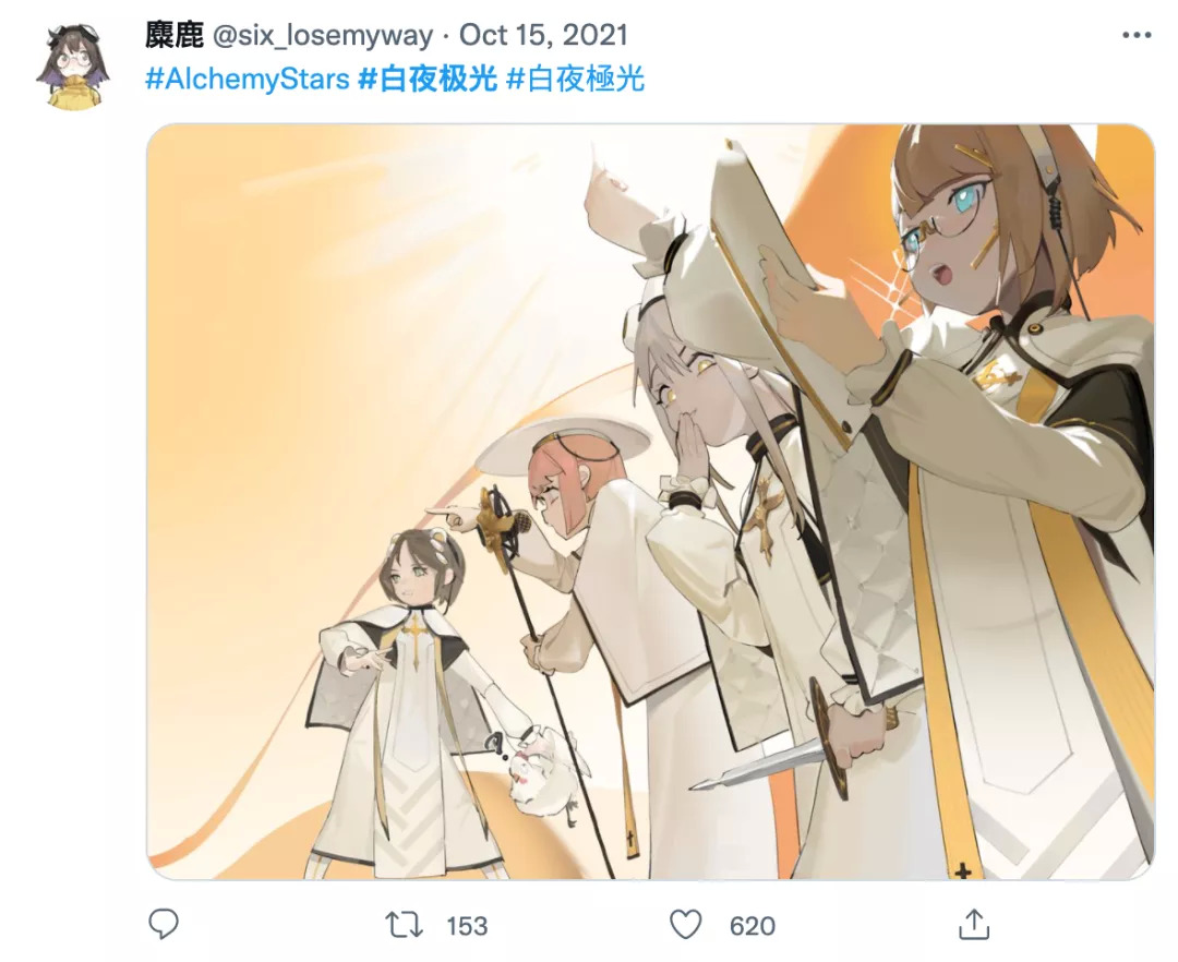 推特也是同人文化输出的大营地,官方也会定期激励玩家进行同人创造,而游戏的原画师或玩家都会为角色们输出精美的二创插图,也是无形的自然流量。