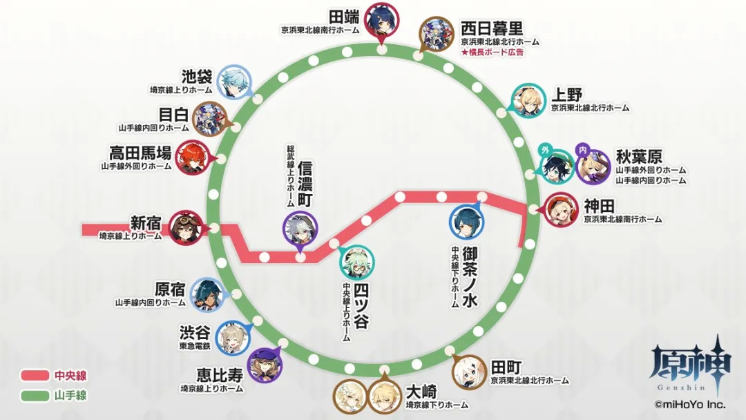 可以想象,前往秋叶原、Anime周边店等二次元著名地标的人群(可被广泛认为是垂直用户),在车站前、乘车期间、到达目的地,一连串旅程中目之所及都是游戏产品不重样的精美人设和插画。