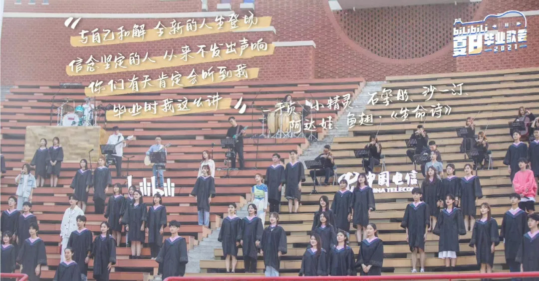 Bilibili作为“最懂年轻人的平台”,其每年的毕业歌会及跨年晚会称得上是业内最成功的案例。2021的“夏日毕业歌会”把舞台搬进校园,歌手和UP主们在教室、球场、天台、草坪等地点唱起校园回忆与未来期许,给观众留下十足的感动。