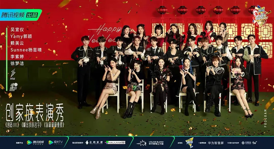 腾讯视频的“家族年年年夜FAN”从晚会名称上就能看出其对于平台IP的聚焦,表演艺人几乎全部来自《创造营》系列、《明日之子》系列、《演员请就位》《认真的嘎嘎们》《脱口秀大会》等平台综艺,节目内容同样围绕IP展开,比如《创造营》三代出道选手同台、表演三季节目主题曲,让选秀粉直呼“爷青回”;《明日之子》二三四季选手同台,完成八把吉他的民谣合作秀。