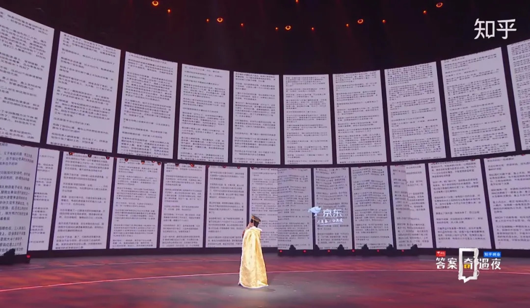 这段表演的名字,来源于站内一名知友所连载的六十七章同名小说,当表演的最后这些小说滚动出现在大屏幕上时,陶昕然潸然泪下,动情地说“感谢知乎”,可以说,知友们的想象力延续了这个角色的生命力。想象力、好奇心、创作与分享、交流与共情,这样的元素贯穿整台晚会,体现着知乎独特的社区气质。