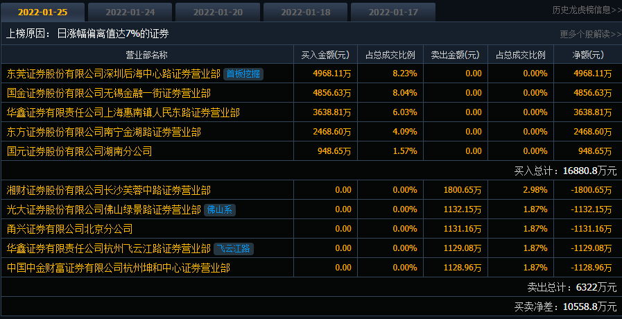由于此前汇通集团尚未开板,其龙虎榜参考价值有限。1月25日早盘汇通集团开板,但随后继续封死涨停板,当日换手率为45.86%。如此高的换手率,是否意味着“最后一棒”的到来呢?