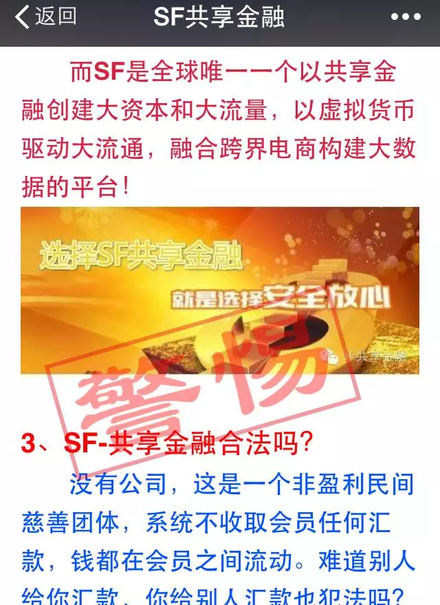 如此高额的收益,笔者查阅完所有“SF共享金融”公众号文章和其他资料,都没有找到有任何实体项目作支撑,笔者不由的联想到当初“3M互助平台”利用新投资人的本金支付老投资人利息的手法!否则,这么一大笔资金,既不是从会员身上获取,平台又不钱多烧的慌,如何空手套白狼?