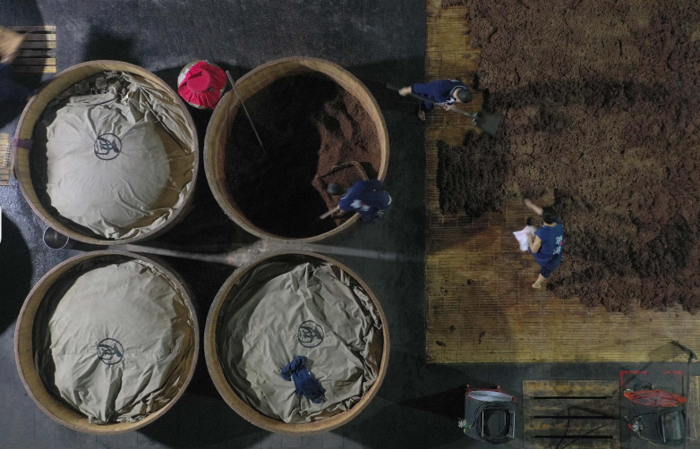 “光蒸煮就要三次,湿度、温度都有讲究,这考师傅手艺,机器代替不了。”江津烧酒酿造技艺市级代表性传承人王河川介绍说,学艺40多年来,驴溪烧酒的酿造工艺一直保持着纯手工,从泡粮、蒸粮,到摊晾、培菌发酵、蒸馏烤酒……一步步丝毫马虎不得。