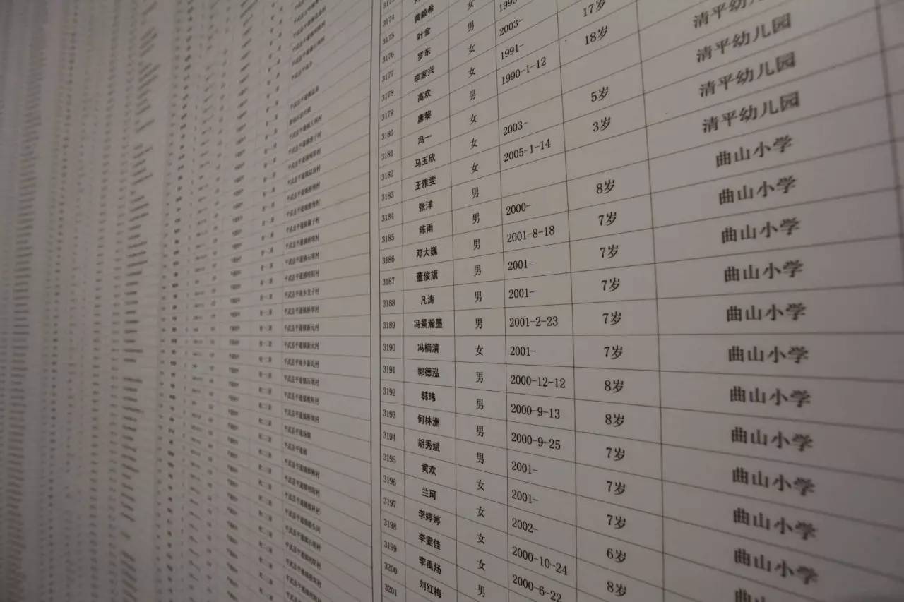 国内某艺术家的作品《琮》,图为其作品中5.12汶川地震5196名死难学生名单的部分。