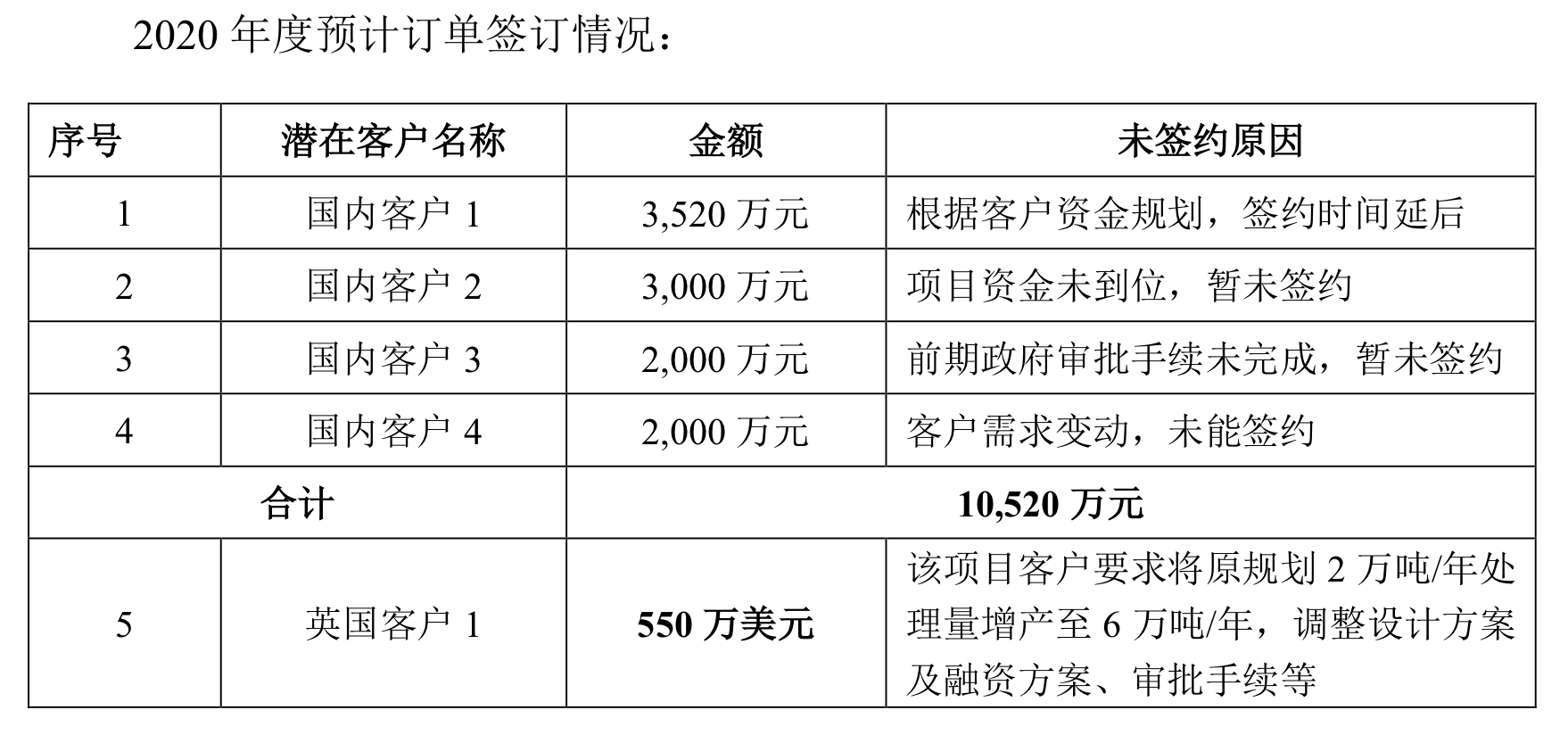 恒誉环保还晒出了自己2020年的“失单”情况。