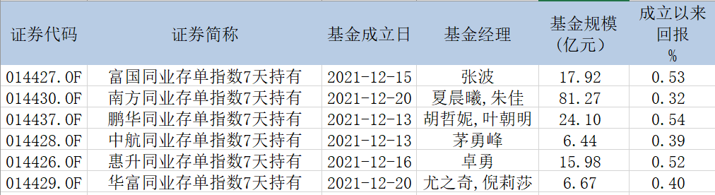 从首发规模来看,南方同业存单指数基金规模最大,为81.27亿元,鹏华同业存单指数基金规模为24.1亿元,富国则为17.92亿元,惠升为15.98亿元。