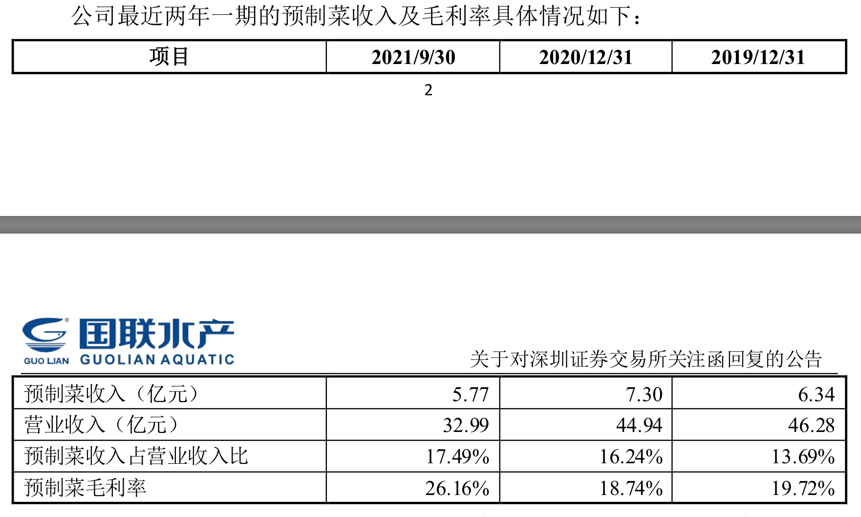 在回复监管层的关注函时,国联水产表示,公司目前预制菜品的发展已具备一定规模,主要包括水煮、裹粉、米面、调理、火锅烧烤等系列。国联水产表示自己与全球知名西式快餐连锁企业、半天妖餐饮、永辉超市、盒马鲜生等建立了长期合作关系。2021年1-9月,公司预制菜主要客户为必胜 (上海)食品有限公司、AQUA STAR(USA), CORP.、福建永辉现代农业发展有限公司、广州市怀洲贸易有限公司、OCEAN BISTRO CORP.、Walmart Chile S.A.等,其中主要客户销售额为2.75亿元,占公司2021年1-9月预制菜收入47.66%。在供应商方面,国联水产预制菜主要为公司自主生产,原材料主要为小龙虾、对虾和罗非鱼等,同公司目前主营业务供应商一致。