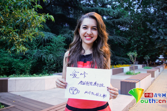 今年3月,爱咔作为外国青年代表之一,参与了中国青年网两会期间特别节目《中外青年看两会——政府工作报告吹响新征程的号角》的录制,并担任外国青年主播。自幼跟随父母来到中国的爱咔,不仅气质出众,学习也十分努力。在中国人民大学国际关系学院学习外交学专业的爱咔表示,希望将来能够继续从事将外交和主播相结合的工作。“两个礼仪之邦”是她对中乌两国的评价。