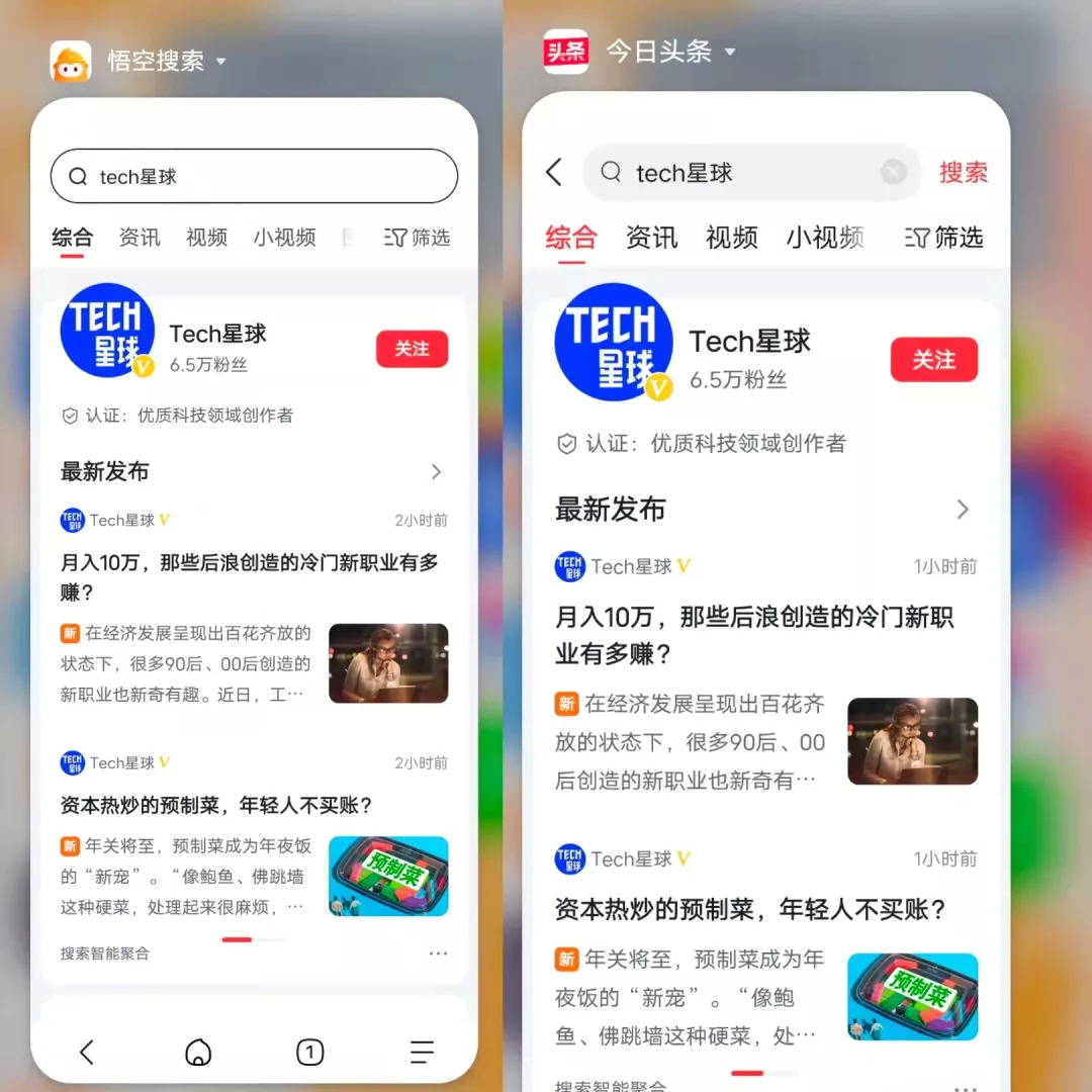 左为头条搜索界面,右为悟空搜索界面