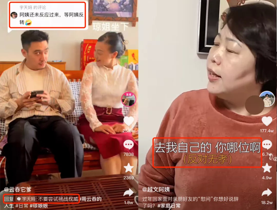 而越文阿姨的账号内容更像是多人情景剧,重在剧情和表演。有观点认为,每条视频中进门的新角色,将带给账号很多发挥空间,但需要做出新意、减少尴尬的情节。