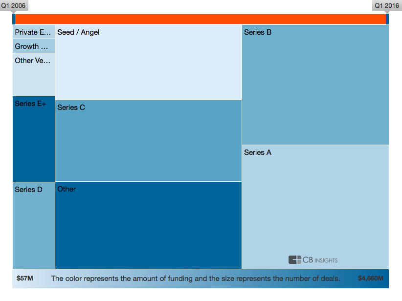 更多的投资都发生在种子轮以及A轮和B轮,而且从数据来看,绝大部分A轮和B轮的投资都发生在从2012年,甚至是2014年以后——十年间30起A轮投资中22起、29桩B轮中的20起都发生在2014年以后,23起种子轮投资中的20起发生在2012年以后。