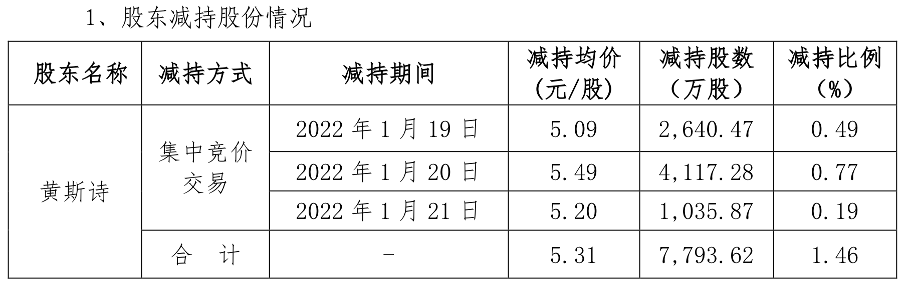 紧接着在2022年1月19日、1月20日、1月21日,黄斯诗都通过集中竞价交易进行了减持,区区3天就减持了7793.62万股。1月27日,金科股份又有两份权益变动公告,当中显示虹淘公司、陶虹遐不排除在未来12个月内增加或减持其在金科股份拥有股份权益的可能。也就是说金科股份目前正面临着卖压。数据显示,虹淘公司持有3.72亿股,占比6.96%,陶虹遐持有1.33亿股,占比2.49%,黄斯诗手头尚有1.24亿股,占比2.31%。黄斯诗为黄红云之女儿。
