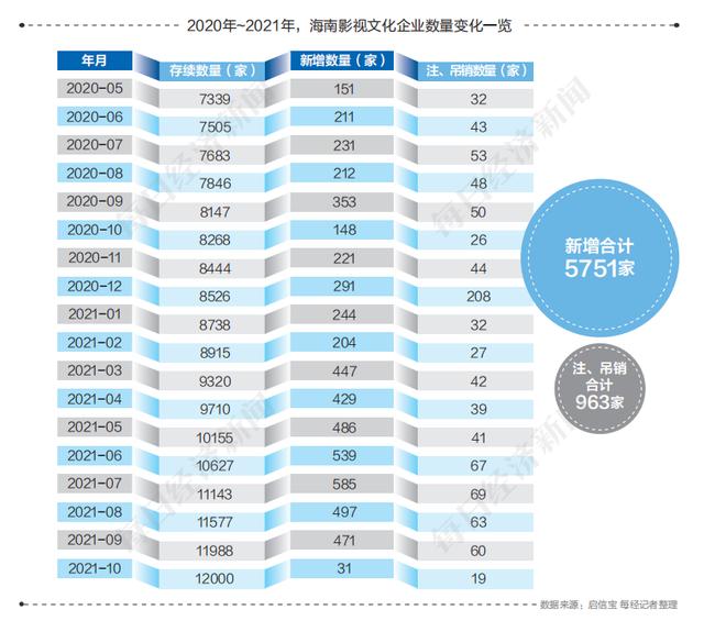 与明星扎堆注销企业形成鲜明对比的是,影视文化公司蜂拥至海南注册新公司。据白皮书《2021强影之路》数据显示,海南影视文化企业数量呈现逐月上升的趋势,截至目前,2021年海南新成立的影视文化企业累计达5751家。此外,白皮书《2021强影之路》提及海南之所以吸引了如此多的明星和资本,主要在于其税收优惠政策。