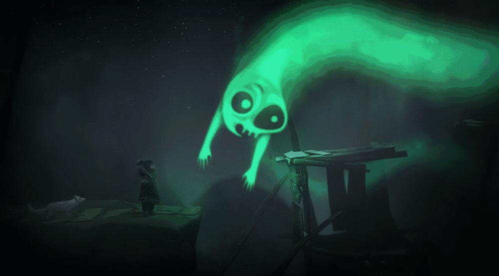 游戏的核心在于营造恐怖氛围,狂风呼啸,暴雪凛冽,小人儿与小狐狸瑟缩着身子步履蹒跚,面具杀人狂在身后如影随形。其中亦邪亦正的“小人国”(the Little People)、狠毒阴险的“杀人狂”(Manslayer)、骷髅幽灵状的“天空人”(the Sky People)都是因纽特人文化的象征,需要个人细细品味,我就不剧透了~