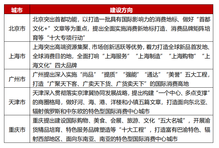 该项政策举措要求高、力度大、影响深,引起业内高度关注。要求之高 —— 要求上海市、北京市、广州市、天津市、重庆市对标一流国际消费中心城市,加快消费转型升级,同时带动一批国内大中城市提升国际化水平。力度之大 —— 国家相关部委与地方政府纷纷出台相关政策措施,各地主要领导亲自部署与动员。影响之深——各地提出了培育建设国际消费中心城市的不同特色定位与打造路径,必将改变过去全国城市商业过于同质化的局面。