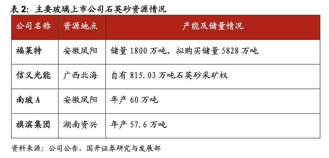 据国开证券研报,目前福莱特拥有安徽凤阳玻璃用石英岩矿7号段采矿权,储量为1800万吨。近期,公司拟购买安徽凤砂矿业公司持有的大华矿业100%股权和三力矿业100%股权,交易完成后储量合计5828万吨,在同行对比中优势突出,同时公司产线大多布局在安徽凤阳,靠近原材料和下游客户,可减少运输成本。