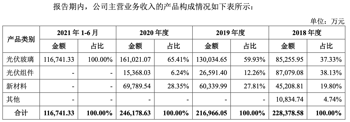 从产品收入构成来看,报告期内(2018年-2021年上半年)彩虹新能源的光伏玻璃收入及占比整体提高,光伏组件业务收入下滑较大,而新材料业务收入稳中有升。2021年后公司聚焦光伏玻璃主业,并于2020年末转让4家子公司股权。