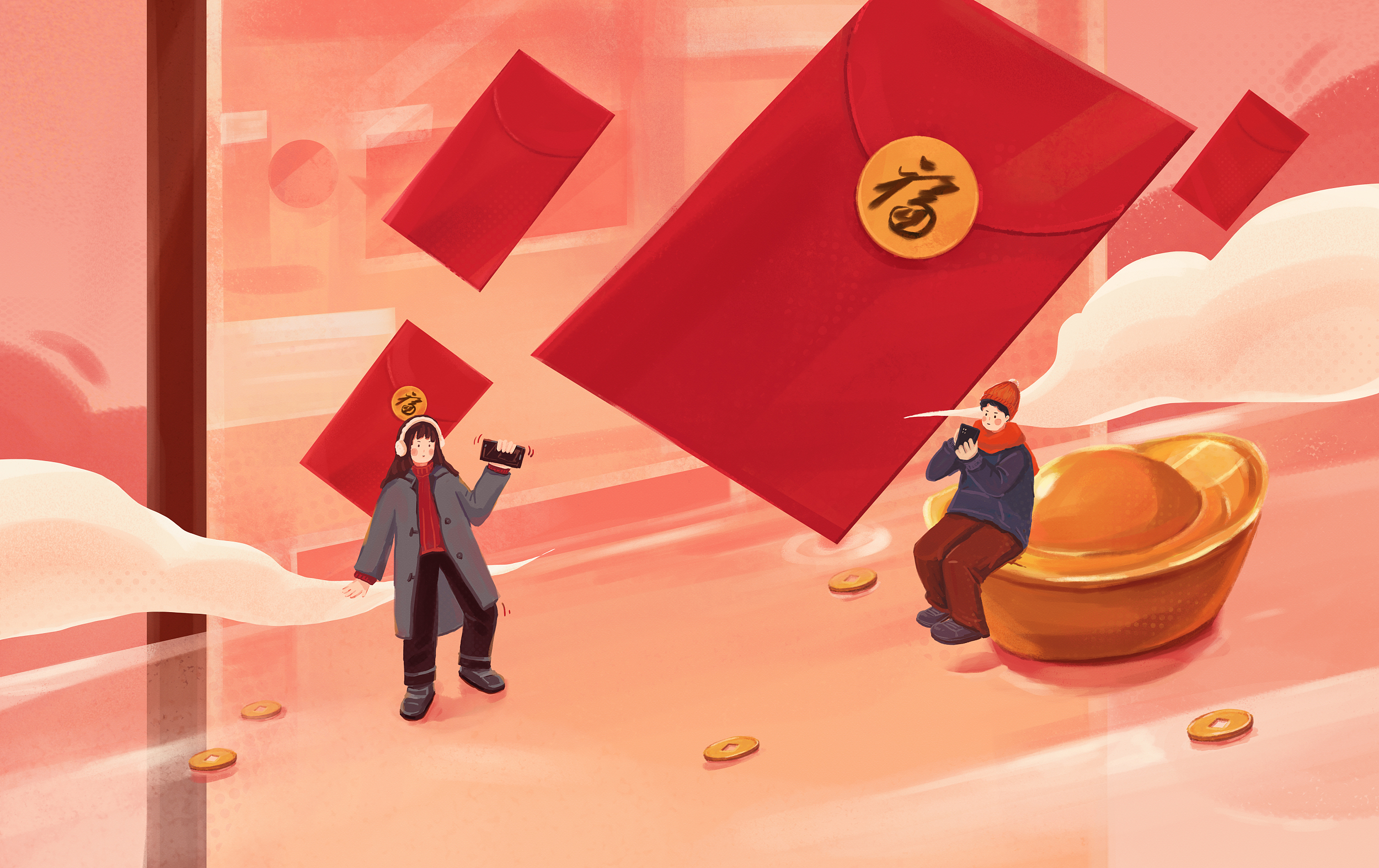 按:纷纷扬扬的吉利话里,红信封在人们手中来回往去,年夜饭后的红包派发是每个除夕夜永远的高潮环节。在中国,红包是古老的礼物,早在宋元时期就已深入人们的社交生活,包裹在信封里的钱币是大人赠给晚辈小孩的新年祝福,也会在店家开业、婚礼节庆等场合作为贺礼出现。古老的红包传统没有在网络时代落伍,而继续以赛博形态活络一段又一段关系,一个又一个群聊。