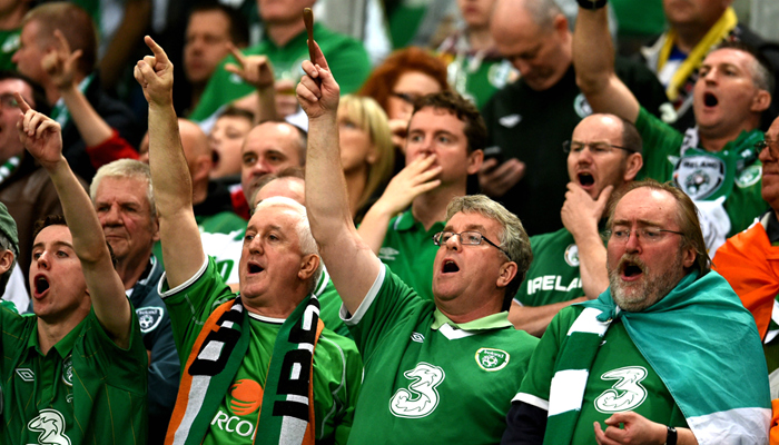 四年前的格但斯克,当法布雷加斯把比分锁定在4-0的一刻,爱尔兰人知道,他们已经成为了那届欧洲杯第一支说再见的球队,然而欧洲杯史上最温情的一幕却在那时上演。比赛的最后10分钟,球场内所有的爱尔兰球迷慷慨高歌,爱尔兰传统民谣《阿萨瑞原野》(The Fields Of Athenry)的旋律响彻球场。歌中有一段是这样唱的:我们的爱随着他们一起飞翔,我们的梦想与歌声无法阻挡。