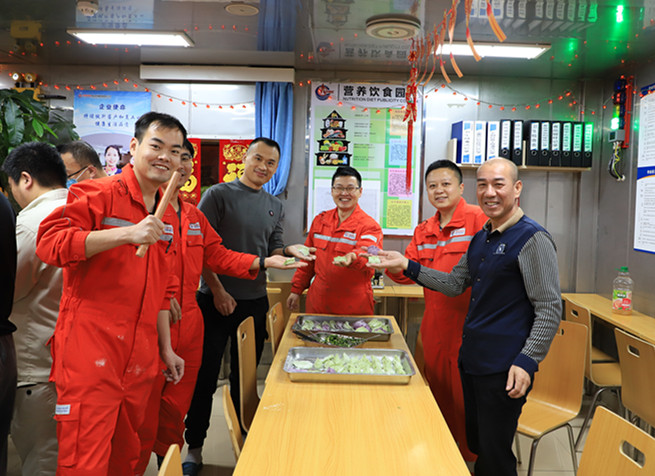 现年35岁的秦斌,参加海上油气开采工作已经十二年。每年春节,海上油气田一半以上的员工需要在海上值守。今年是秦斌第六次在海上过年,和他一起的还有70多位同事。