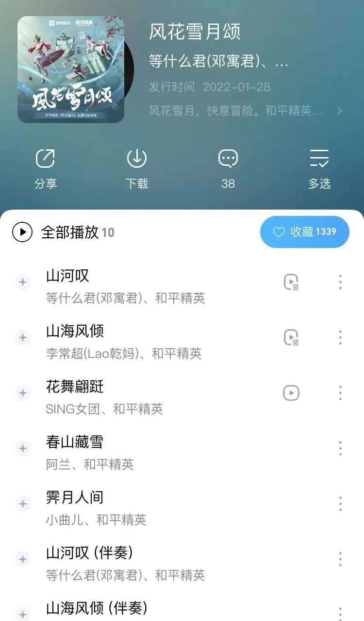 此外,配合此次的“风花雪月”时装、主题曲发布,《和平精英》还联合酷狗音乐打造出了时装印象专辑《风花雪月颂》。以时装为引线,以乐器为载体,传达新式国风潮流。