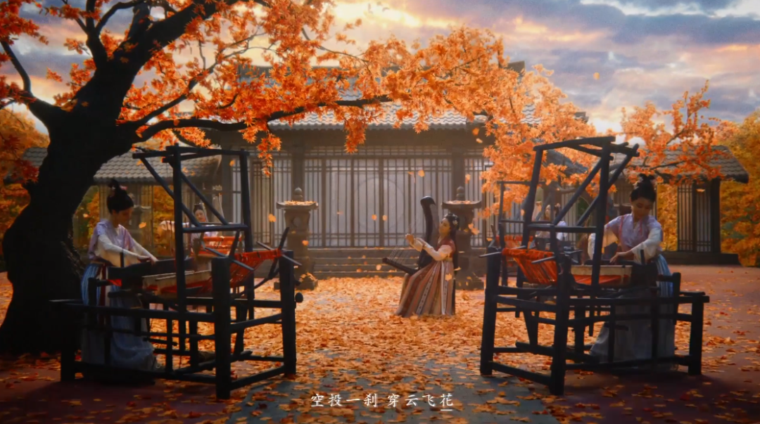 值得一提的是,在主题曲的创作过程中,制作团队还通过时装设计汲取灵感,将“风花雪月”分别对应在羌笛、箜篌、琵琶、古琴四种乐器,并将其融入主题曲的编曲和旋律,甚至在歌词剧情中都有所体现。