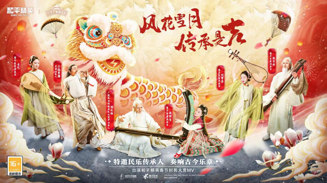 合作形式远不局限于此。在2022年春节前夕,除了此次上线的“风花雪月”主题时装之外,《和平精英》还在春节贺岁片《龙狮城传说》中融入了许多中国新年传统的年俗活动。玩家在进行传统模式游玩之余,还能够在新场景中体验撞钟、祈愿、舞龙狮等年节气息浓郁的新玩法,真正实现在游戏中“欢度新年”。