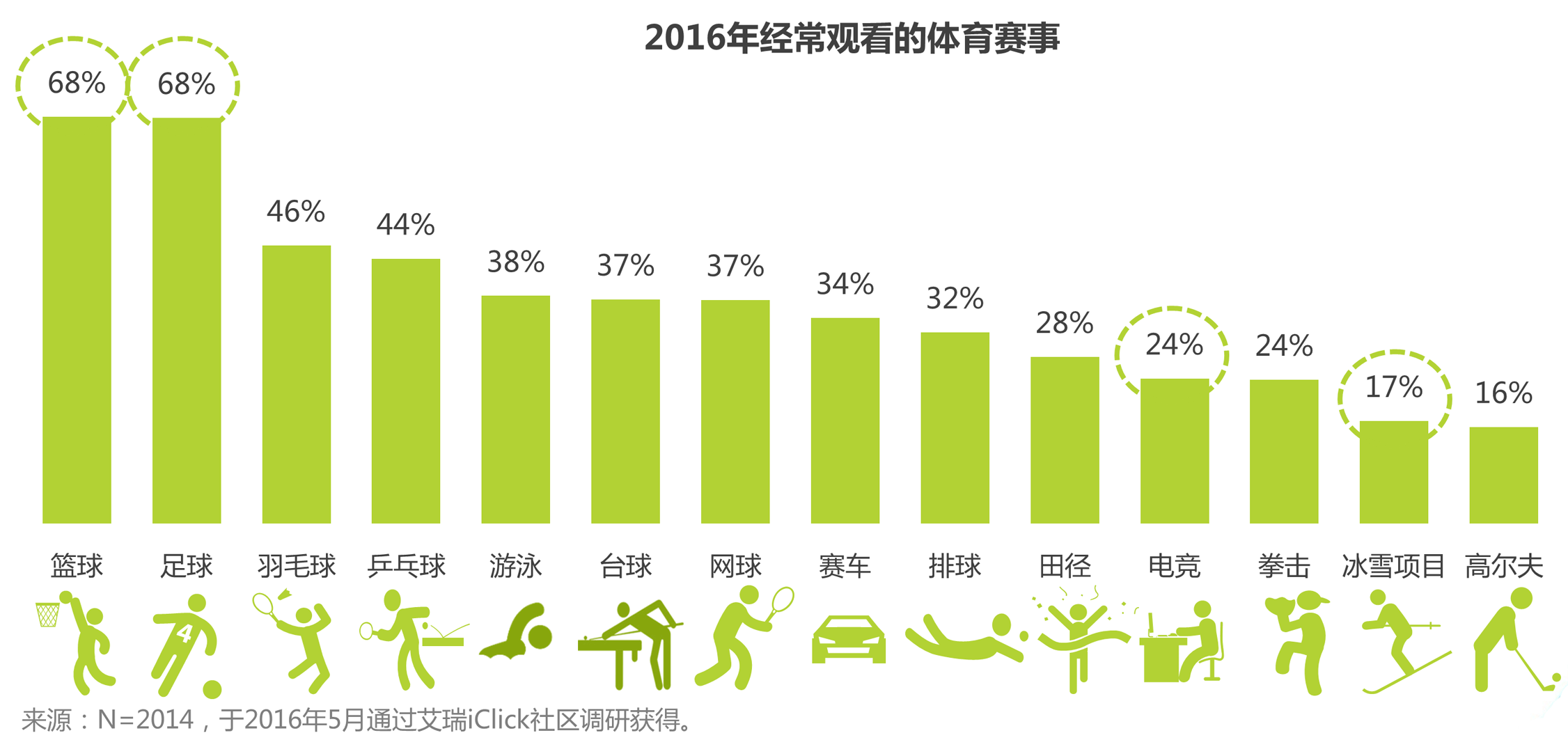 得益于2016年是体育大年和互联网对赛事的大力传播,篮球足球等主流赛事吸引了更多观赛网民。