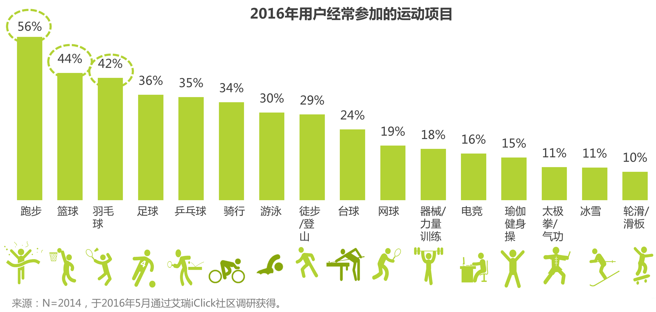 兼具免费、健身、娱乐和实现便利性等特点的运动成为大众主要参与项目。