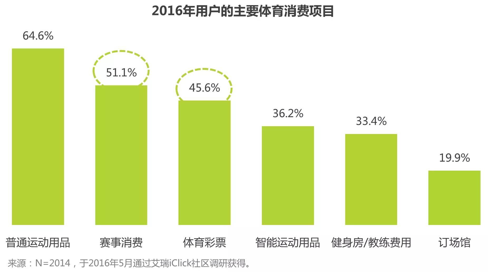 体育用品仍是最大的体育消费项目,过半体育用户发生过赛事消费。