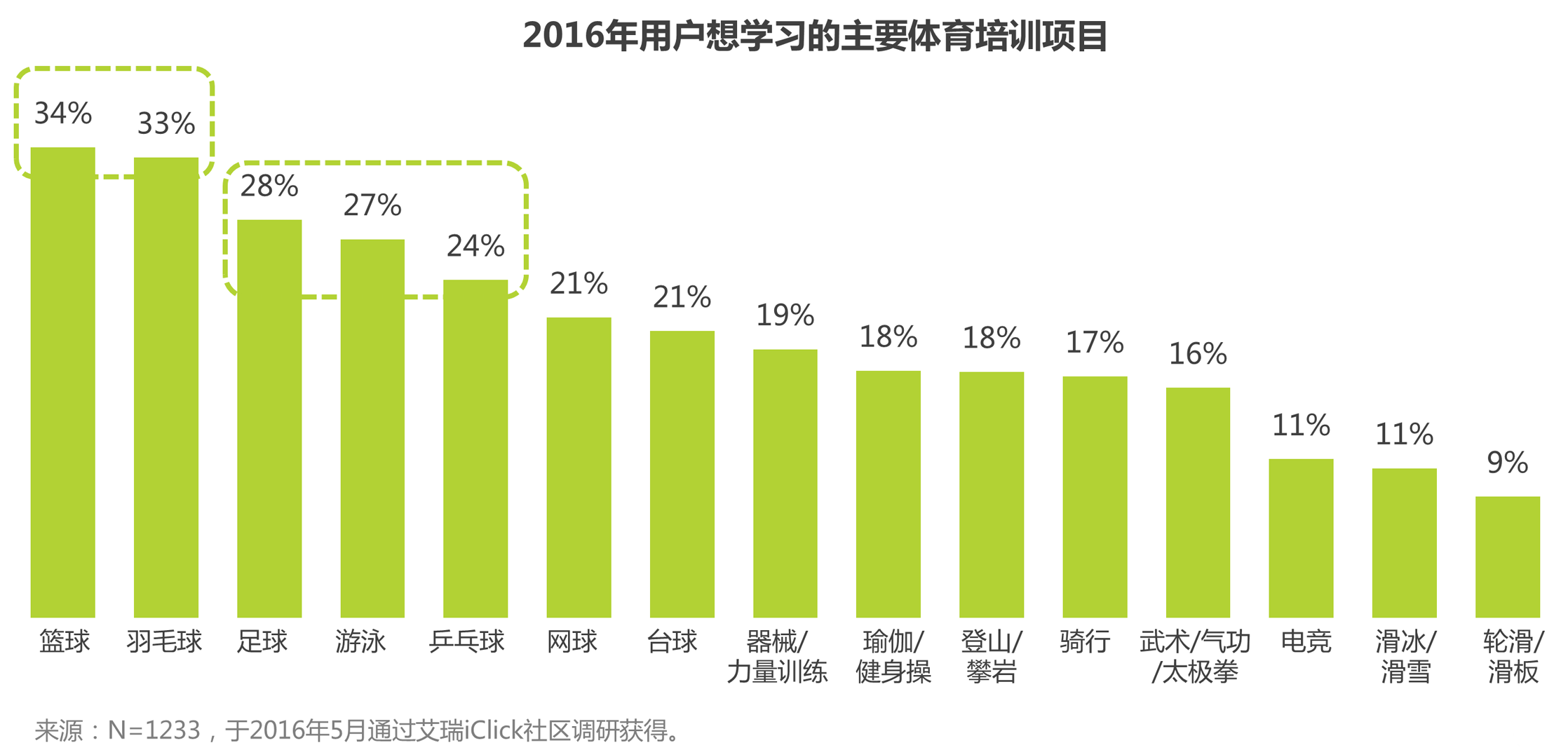具有群众基础、娱乐性和便利性的运动是最具需求和挖掘潜力的体育培训项目。