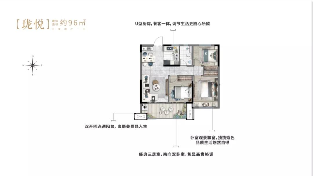 【珑悦】建筑面积约96㎡ 三室两厅一卫