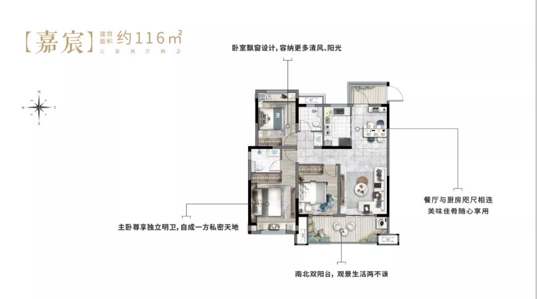 【嘉宸】建筑面积约116㎡ 三室两厅两卫