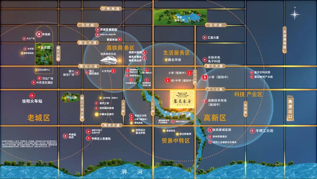 论中国城市的发展,高铁的方向、即为城市的核心区域。金科集美东方位于高铁轴芯片区,不仅是城际枢纽门户,更凭借“三纵四横“的优越交通路网,与信阳老城区、东八县紧密相连,畅通四方。