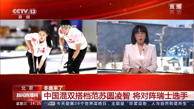 今晚8时05分,中国混双搭档范苏圆/凌智将对阵来自瑞士的平昌冬奥会银牌得主。