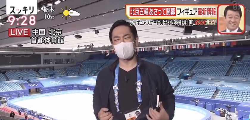 尽管羽生结弦继续“失踪”,不过花滑依然是最受关注的项目之一。2月2日,日本电视台记者辻岗义堂在首都体育馆进行花滑赛前采访。