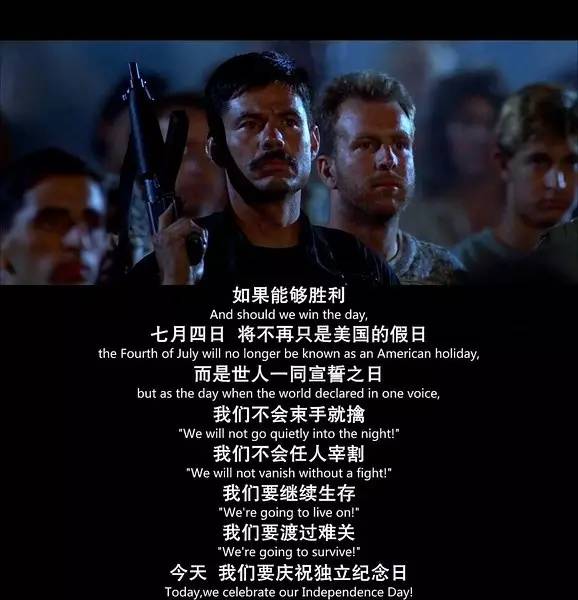 在《独立日》中,总统托马斯来到战机前,向所有参加战斗的飞行员发表了这次演讲。