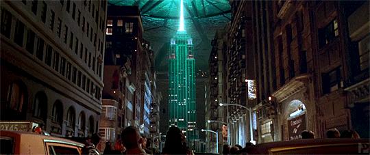 外星飞船的袭击让城市陷入一片火海,不少建筑物被导演毁了个稀巴烂。