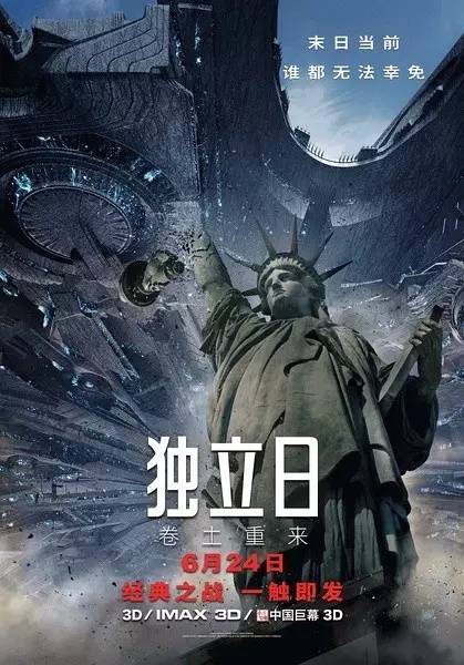 从《独立日2》的海报中,可以窥见在新一集中被摧毁的建筑,
