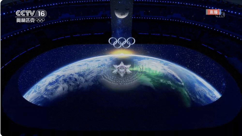 这块竖屏是一块近60米高、20米宽的LED屏,名为“冰瀑”。要在平地竖起这样一块大屏,一大考验是大风,秋冬季节的场内风速足以将屏幕撕烂,为此技术团队记录了一两百种风况来攻坚这一技术难题。此次开幕式的舞台地面是目前最大的8K超高清地面显示系统,整体面积达10393平方米,京东方采用多个8K+级分辨率的画面融合技术,超大规模的光学校正算法可对每个显示画面进行像素点级的光学校正,可呈现出100000:1超高对比度,3840Hz超高刷新率,以及29900x15096超高分辨率的超高清绚丽画面。蓬勃的黄河之水慢慢冰冻,然后出现了一个巨大的近3层楼高的立方体冰块(冰立方),历届冬奥会的标志随着激光刻刀逐一被雕刻出来。