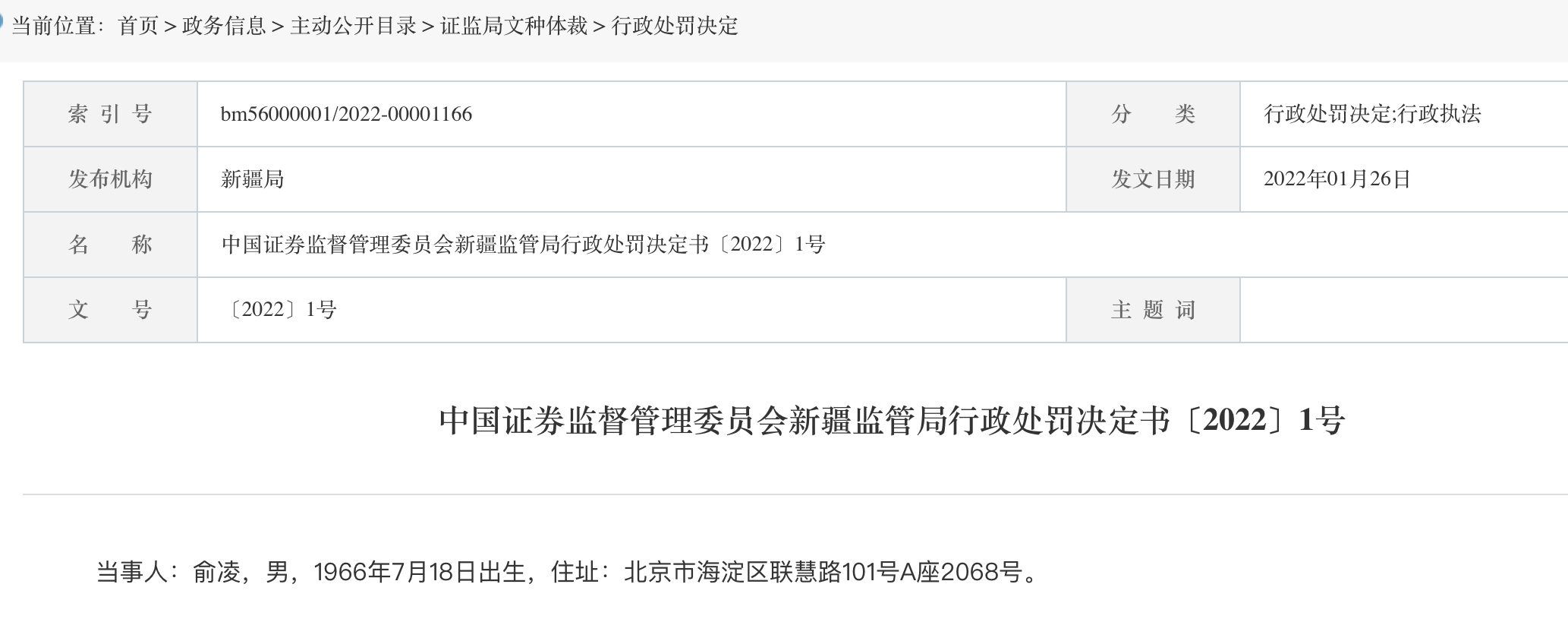那么,这个信息源头ST安控的实际控制人俞凌呢,新疆监管局认为俞凌泄露内幕信息的行为,违反《证券法》第五十三条第一款的规定,构成《证券法》第一百九十一条所述的内幕交易违法行为。根据当事人违法行为的事实、性质、情节与社会危害程度,依据《证券法》第一百九十一条的规定,证监局决定:对俞凌处以50万元的罚款。从立案来看,俞凌是在2021年8月中旬收到的《立案告知书》,内容显示因涉嫌证券市场的内幕交易(泄露内幕信息)而被立案;而到了2021年11月30日,俞凌就已经收到了来自新疆监管局的《行政处罚事先告知书》,不过其中没有公布细节。一直到2022年1月26日,新疆局最终公布行政处罚决定书,也同时公布了上述的细节。