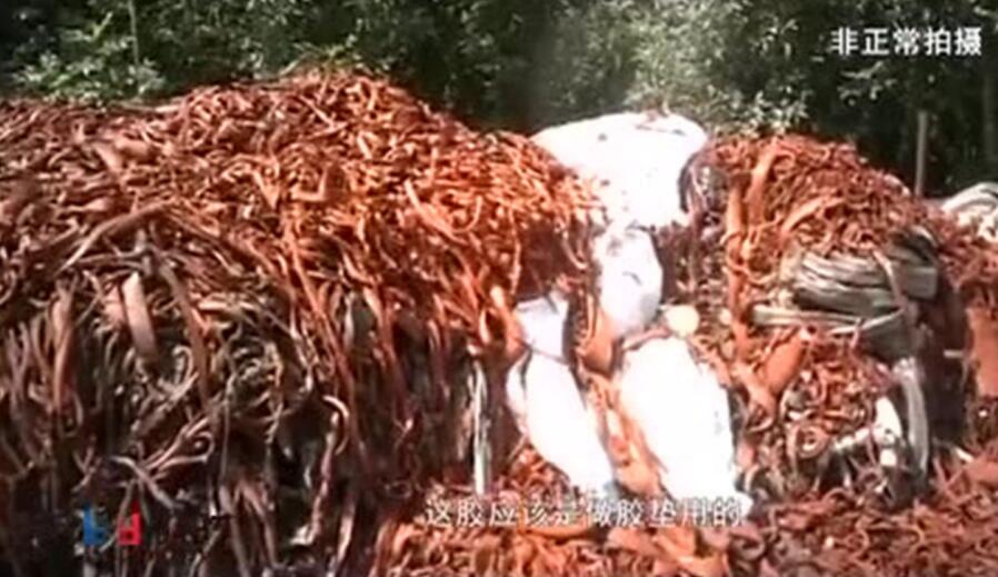 在这个庭院里,记者注意到,这里占地上千平方米,一进大门的右侧,200多米长的路上,堆满了黑色橡胶垃圾。记者随手拿起一个废弃的橡胶,张老板立即走上来,开始给我们进行讲解。“这所有的东西,黑的东西,你看他院里所有黑的,都能打成颗粒。”