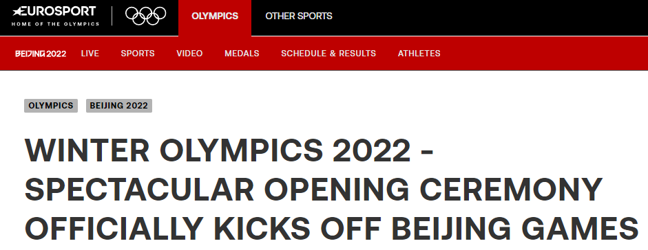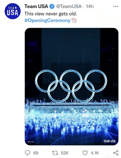 今日美国网站评价开幕式“耀眼夺目”;《华盛顿邮报》称,开幕式是一种视觉享受;《卫报》说开幕式令人叹为观止,是一个充满希望的开始。