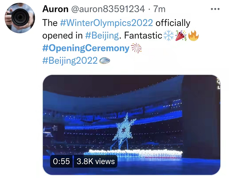 2月4日晚,北京2022年冬奥会正式拉开帷幕,美轮美奂的开幕式不仅成就了“双奥之城”,还收获了国际上的一片赞誉之声。各国媒体提前预热,全程直播,并制作特别节目回放开幕式精彩时刻;海外民众聚集在当地地标举行活动,同步庆祝冬奥会开幕;家庭、餐厅以及其他各类公共场所的电视机屏幕锁定开幕式直播;外国网友边看边发帖,赞叹创意,种草服装,下单纪念品。