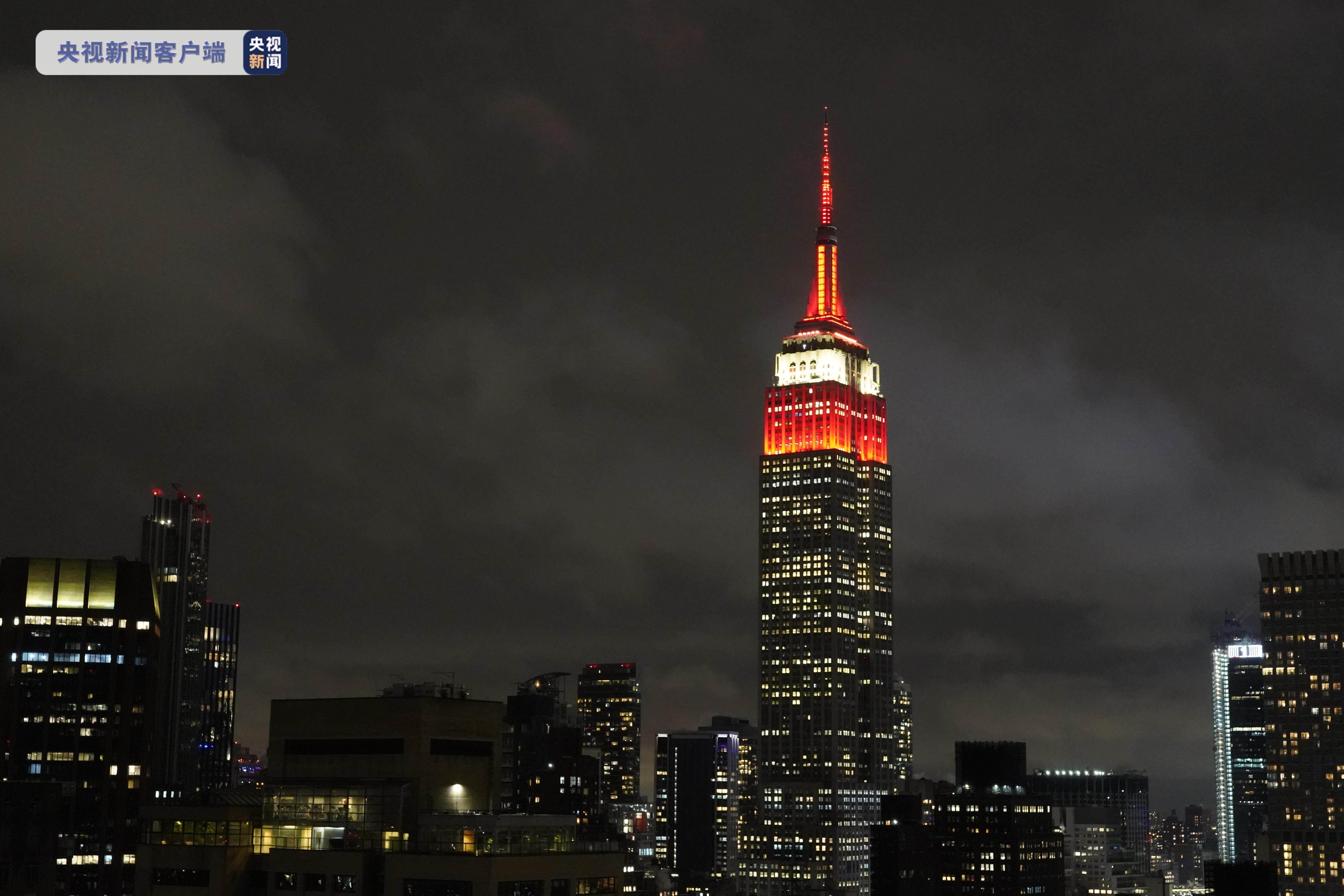 当地时间2月4日晚,美国纽约帝国大厦一改传统的每日单一配色,在楼顶上演灯光秀,以本届冬奥会主办国中国为始,轮流点亮各个参赛国国旗颜色灯光。