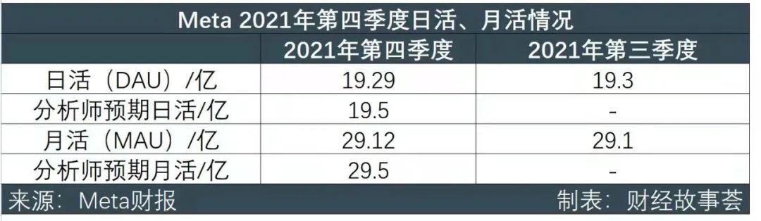 文章开头阐明了2021年第四季度Facebook的月活和日活相对2021年第三季度没有显著变化。