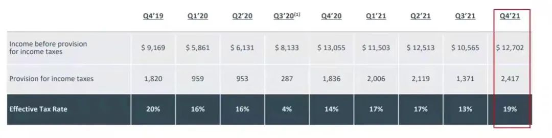 Meta在2021年开始筹划税收,根据法律要求提高研发费用资本化比例,筹划的结果为:2021年全年,Meta的有效税率为16.7%,而这个数据,在2020年仅为12.2%,2021年有效税率相对2020年提高了4.5个百分点。
