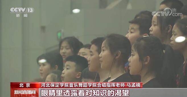 河北保定学院音乐舞蹈学院合唱指挥老师 马孟楠:挺配合的,大山里的孩子他们非常朴实,你能看到每次老师去排练,他们自发地热烈鼓掌,眼睛里透露着对知识的渴望,那种瞪着大眼睛看着你,就觉得特别感动。